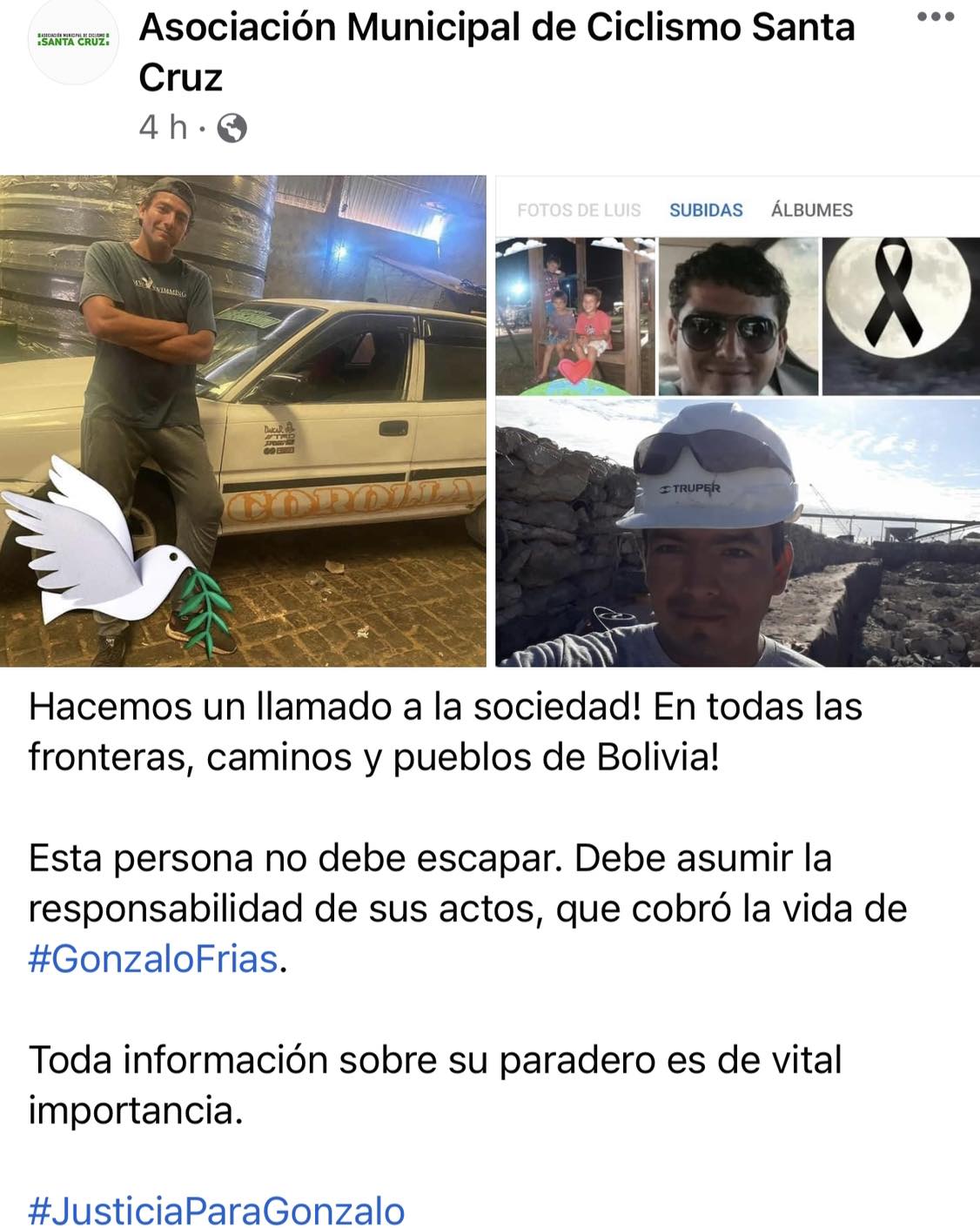 Esta persona no debe escapar. Debe asumir la responsabilidad de sus actos, que cobró la vida de #GonzaloFrias.