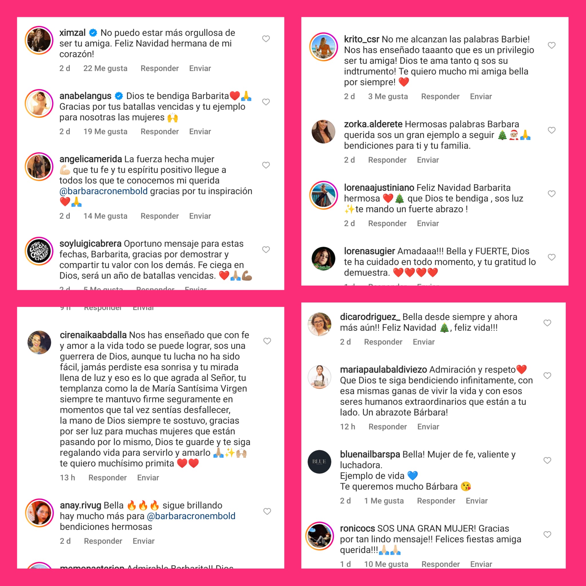 💝»Si me preguntan que pediría en esta Navidad… Pediría la misma vida que tengo, el mismo cáncer, las mismas ganas de luchar y también la misma familia, a los mismos amigos incondicionales, y al mismo compañero de vida, las mismas lecciones aprendidas y el mismo optimismo para enfrentarla pero sobretodo la misma FE en Dios. Gratitud es la palabra que define este año para mí. Feliz Navidad.»