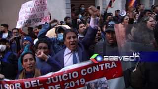 Solo imágenes: medio de gritos y empujones en la puerta de la Fuerza Espacial de Lucha Contra el Crimen (FELCC) esperaban diferentes organizaciones sociales el arribo del Gobernador de Santa Cruz, Luis Femando Camacho aprehendido por el caso “golpe I” la policía se vio obligada a intervenir.