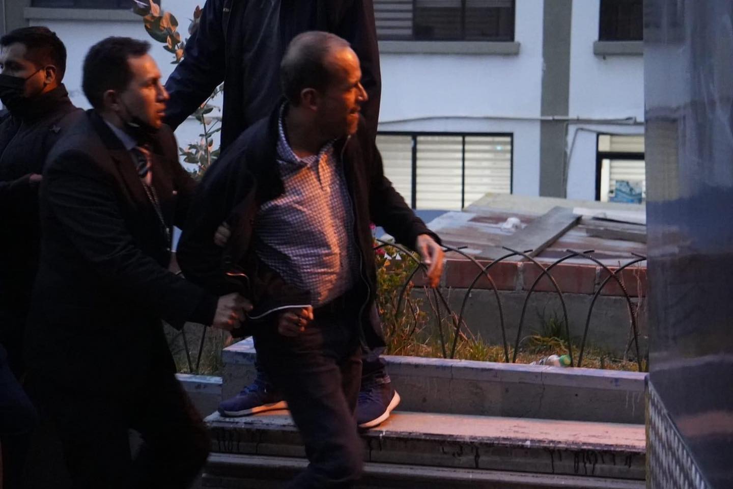 Así ingreso Luis Fernando Camacho hasta la FELCC sen la ciudad de La Paz, después de ser traslado desde la ciudad de Santa Cruz en un helicóptero súper puma.