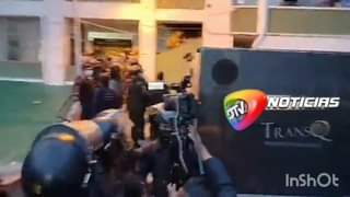 El Gobernador cruceño llegó a la Fuerza Anticrimen, a la Dirección Especial de Lucha contra la Corrupción, observe el momento de su llegada.