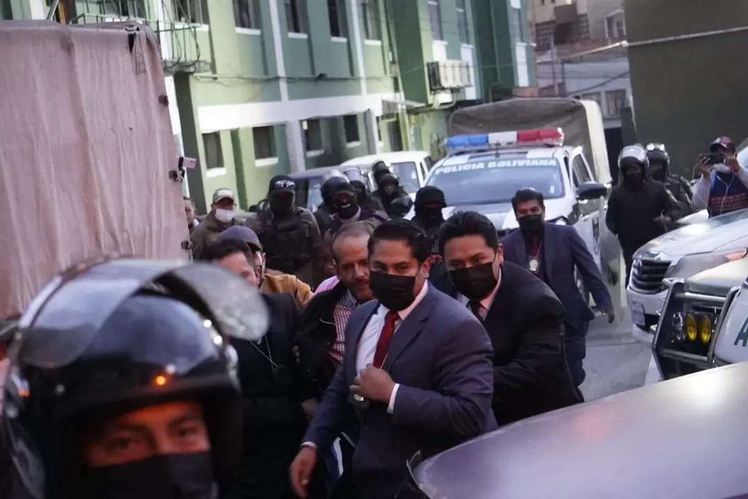 Momento en que el Gobernador de #SCZ, Luis Fernando Camacho, llegó a la FELCC en #LaPaz