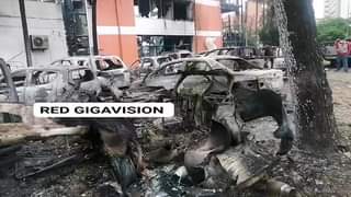 #SantaCruz. Al rededor de 30 vehículos que se encontraban en la Fiscalía Departamental quedaron calcinados luego que fueran incendiados, las llamas consumieron las oficinas.
