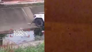 La patrulla policial quemada en la comisaría del barrio Chacarilla, terminó dentro del canal Cotoca, entre 3er y 4to anillo.