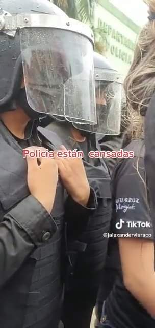 En medio de las protestas de mujeres en las puertas del Comando se pudo ver como una policía no podía mantener los ojos abiertos debido al cansancio.
