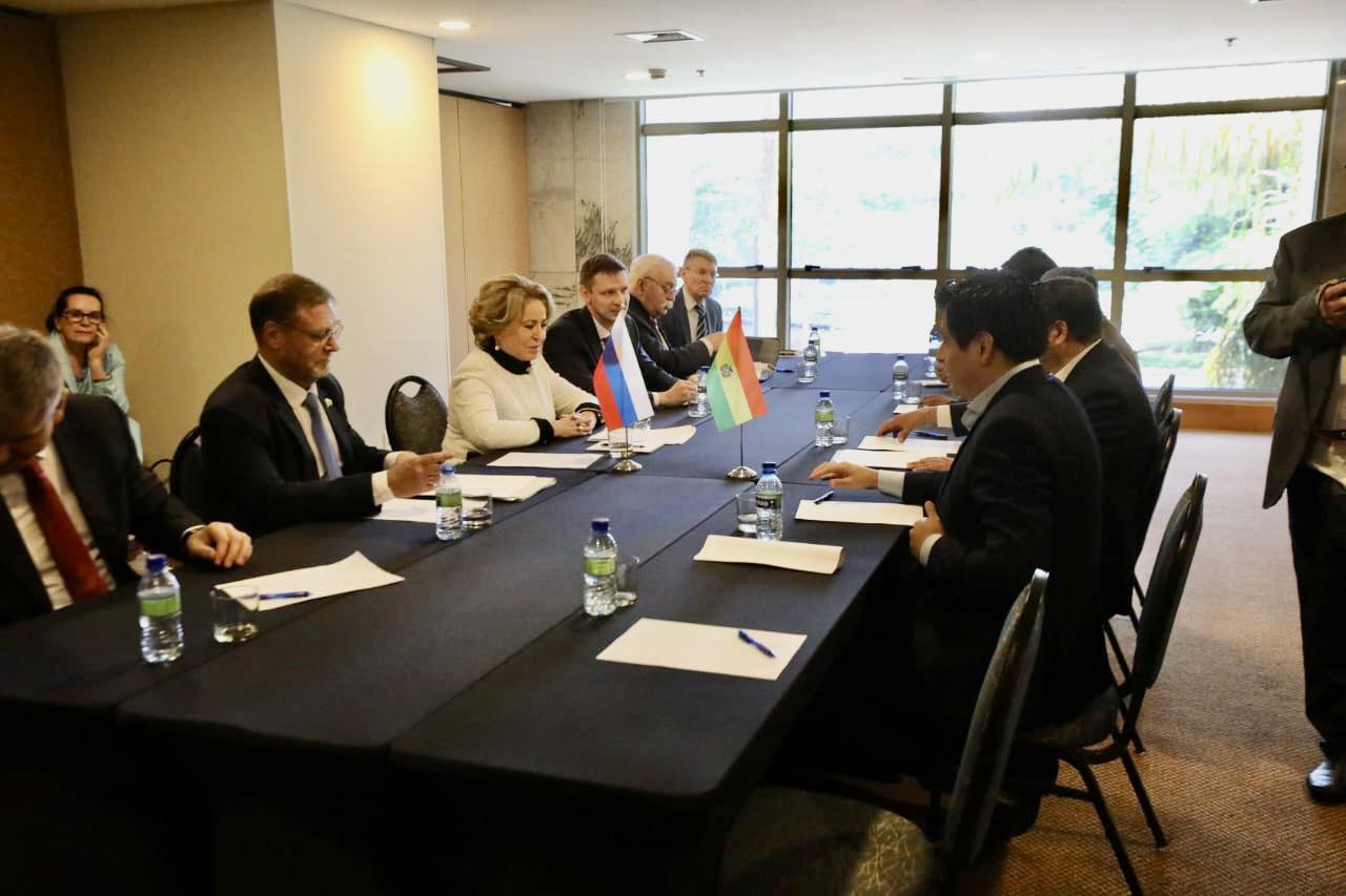 Tras su arribo a Brasil 🇧🇷, el presidente ilegítimo de Bolivia 🇧🇴, sostuvo reunión con los principales representantes del Consejo de la Asamblea de la Federación Rusa 🇷🇺.