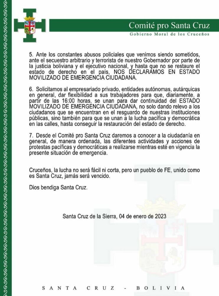 🔵 #ANF I El @ComiteProSC, "en cumplimiento a las determinaciones de la Asamblea de la Cruceñidad", resolvió mantener los bloqueos en las carreteras, el resguardo permanente de las instituciones públicas, entre otros puntos. pic.twitter.com/bgPZf6gdMt