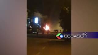 #SantaCruz: El comandante policial del Plan 3.000 Willy Zeballos, calificó como criminal el ataque que recibió el puesto policial en la zona del obelisco por parte de encapuchados donde lanzaron petardos de largo alcance y con bombas molotov quemaron un vehículo policial.