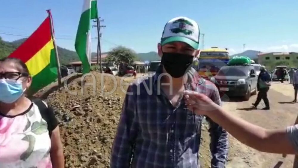 🔵 #ANF | #SantaCruz Un grupo de personas bloquea la carretera antigua a #Cochabamba y la ruta a los valles cruceños en apoyo al gobernador @LuisFerCamachoV. Advierten que la medida es indefinida. (Video: Cadena A) pic.twitter.com/dcRUKJCIsE