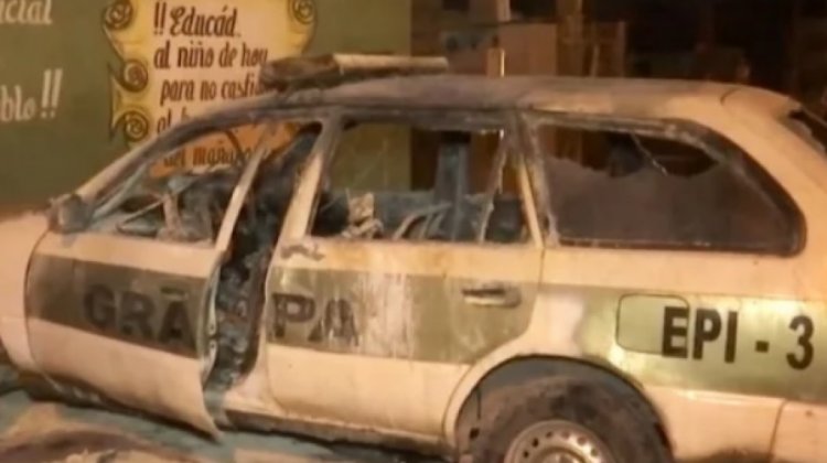 🔵 #ANF | #Seguridad Santa Cruz: Atacan la estación policial del Plan 3000 y queman un vehículo oficial