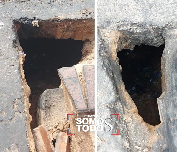 Alertan sobre la abertura de un boquete en medio pavimento en la calle Muchirí, en la zona del mercado antiguo Ramada.