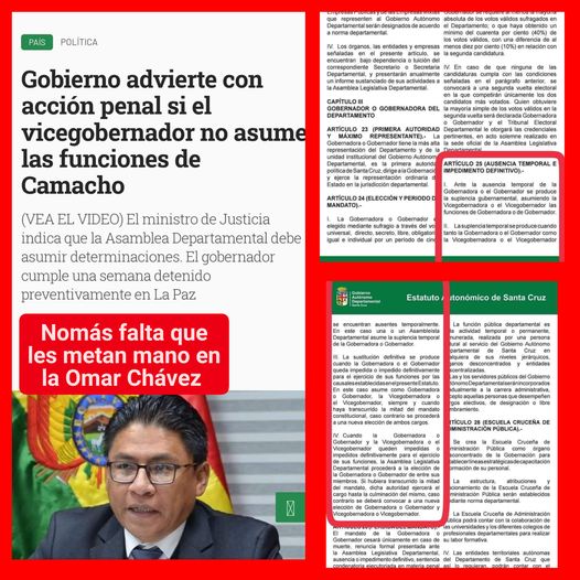 Se viene una semana intensa en donde toda la estructura gubernamental y los asambleístas departamentales del MAS 🛑, presionaran sobre la base del Articulo 25 del Estatuto Autonómico Cruceño.