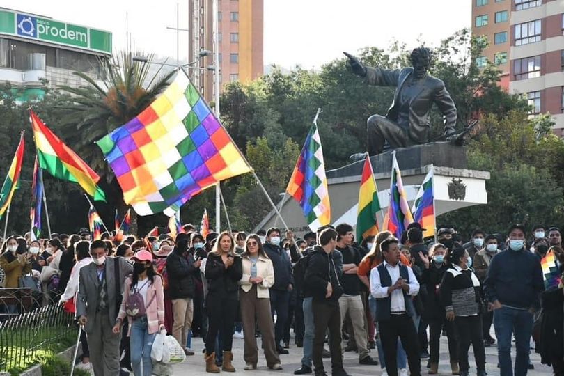 Simpatizantes del MAS en La Paz se adelantan y le ganan la plaza Abaroa a quienes iban a reunirse allí para iniciar una marcha en favor de la libertad de Camacho