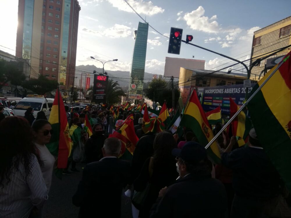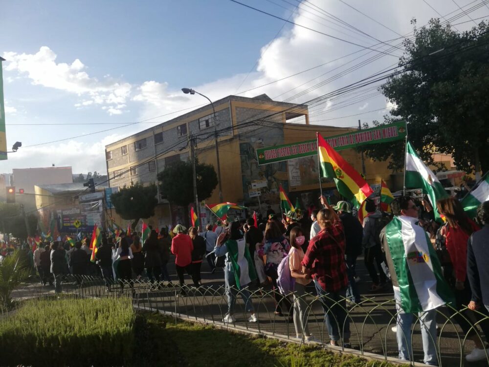 🔵 #Ultimo | Ciudadanos se concentran en la plaza de San Miguel, en la zona sur de #LaPaz, para participar de la marcha en apoyo al movimiento cívico que demanda del cese de la persecución política y judicial, además de la liberación de los presos políticos. (📷: Página Siete) pic.twitter.com/HGVh6ir73P