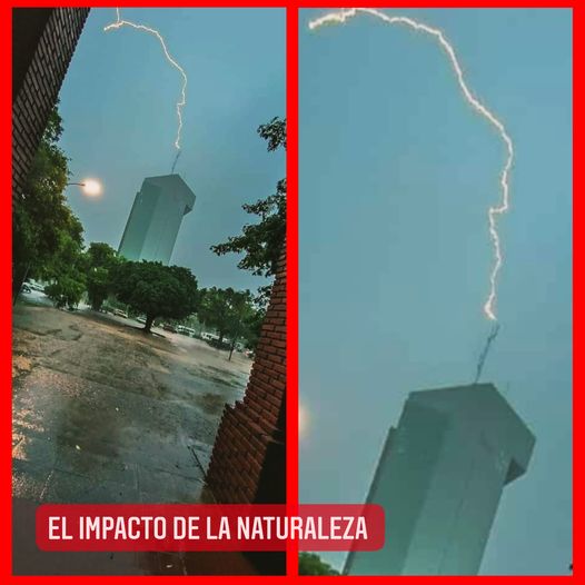 Imagen captada por un ciudadano en momento exacto en que un ⚡ impacta en el pararrayo del palacio de justicia 🌩️