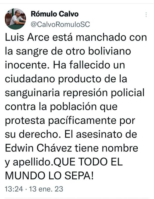 Rómulo Calvo se pronuncia en redes sobre el hombre que murió esta mañana después de haber perdido un ojo en medio de los enfrentamientos.