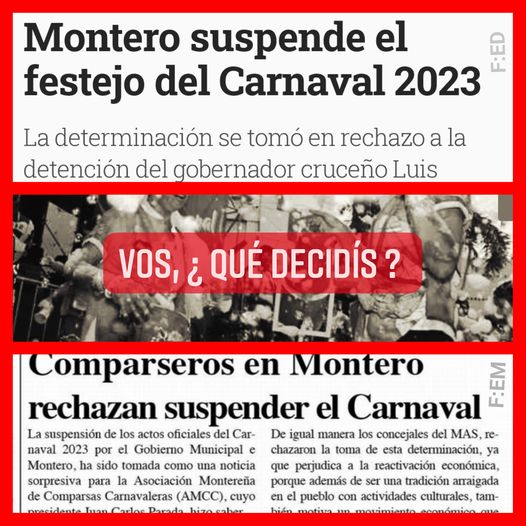 🤦🏽 El liderazgo cruceño decide las medidas que se pueden hacer esos días de carnaval.