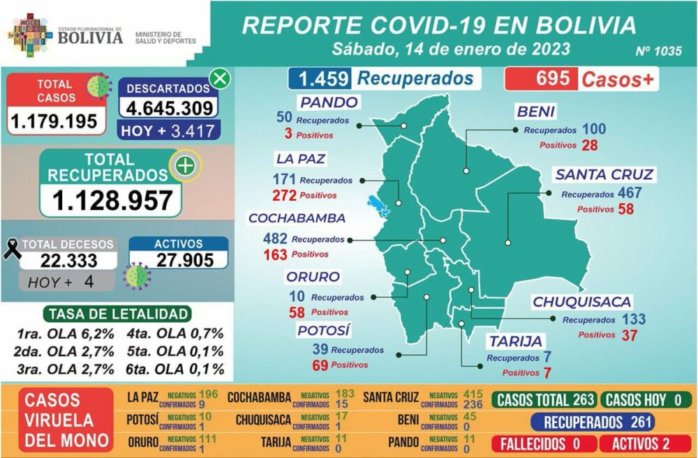 🔵#ANF | #Sociedad El Ministerio de Salud reportó el sábado 695 nuevos casos de #COVID19 en todo el país, 4 decesos y 1.459 personas vencieron al virus. https://t.co/ciw31jfVFg