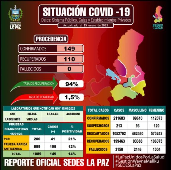 đ”#ANF | #Sociedad El Servicio Departamental de Salud de La Paz registrĂł este domingo 149 contagios nuevos de #COVID19, ningĂșn deceso y 110 personas que vencieron al virus. pic.twitter.com/gMUiwWIVAb