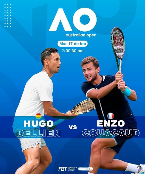 Que ganes mañana en Australia querido Hugo, orgullo boliviano 🇧🇴. El Tigre boliviano se enfrentará al francés Enzo Coucaud en el Gram Slam Australia Open. Si le gana, se enfrentará luego a Novak Djokovic, leyenda mundial del tenis que quiere batir nuevos récords. Vamos Hugo!