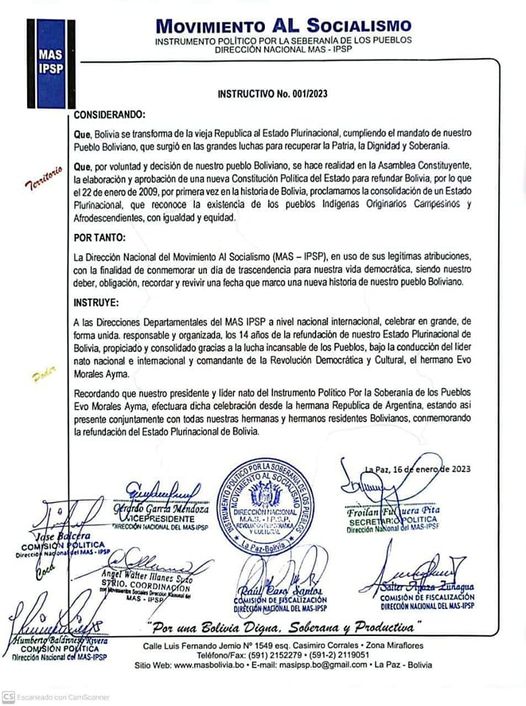 El MAS instruye que celebración del Día del Estado Plurinacional se lleve a cabo bajo la conducción de Evo