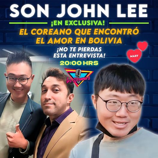 No te pierdas desde las 20:00 hrs al famoso del momento Son John Lee 🇰🇷 en una entrevista inédita donde nos hablará de todo sobre su amor por Mary y como logro encontrarla gracias a la ayuda de los bolivianos ❤️👈🏻