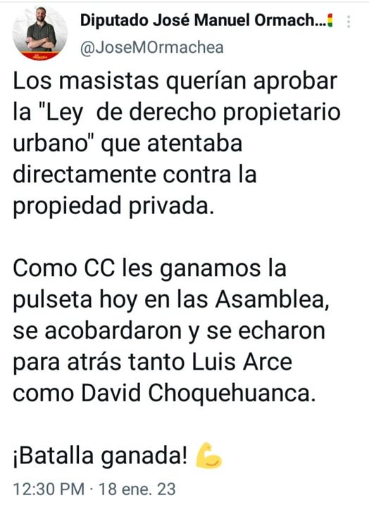 Diputado de CC denunció que el MAS pretendió aprobar la «Ley de Derecho Propietario Urbano» atentando a la propiedad privada