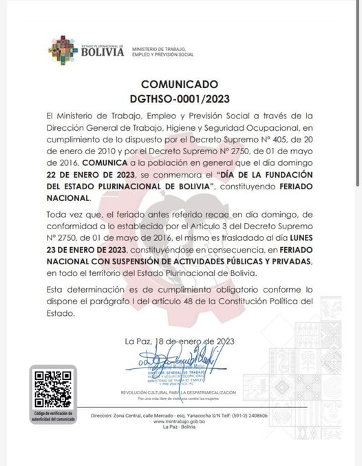 Ministerio de Trabajo dispone que feriado del 22 de enero se traslade al lunes 23 de eneroCategorías NoticiasEtiquetas , Detrás de la Verdad, DTV, Facebook 18/01/2023 [vid_embed] Fuente: DTV => Recibir por Whatsapp las noticias destacadas