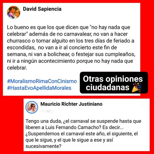 Está circulando una corriente (que es la que todos los años busca motivos para suspender el carnaval), qué por la situación actual que estamos viviendo se debería suspender la fiesta grande los cruceños.