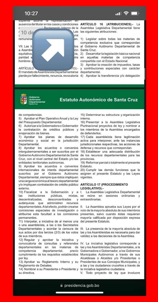 -La Asamblea Legislativa es un poder constituido por el Estatuto Autonómico de Santa Cruz