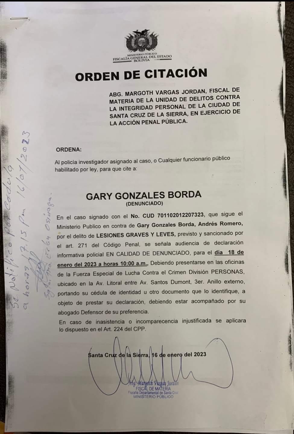 La Fiscalía de Santa Cruz ordenó la aprehensión de Gary Gonzales Borda, miembro de la resistencia del Plan 3.000.