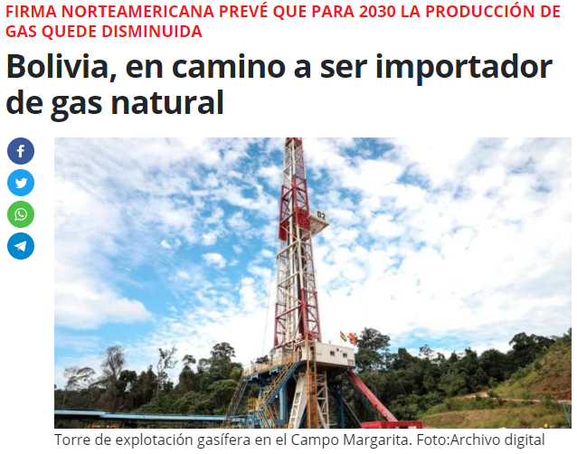 #Bolivia | El país se encuentra en camino a ser importador de gas natural según Wood Mackenzie: la producción de gas caerá “más rápido de lo esperado”. Pasará de los 1.400 mmcfd en 2022 a un mínimo de 400 mmcfd para 2030. No es sólo ineptitud, es socialismo. https://t.co/VD62bqNfU0