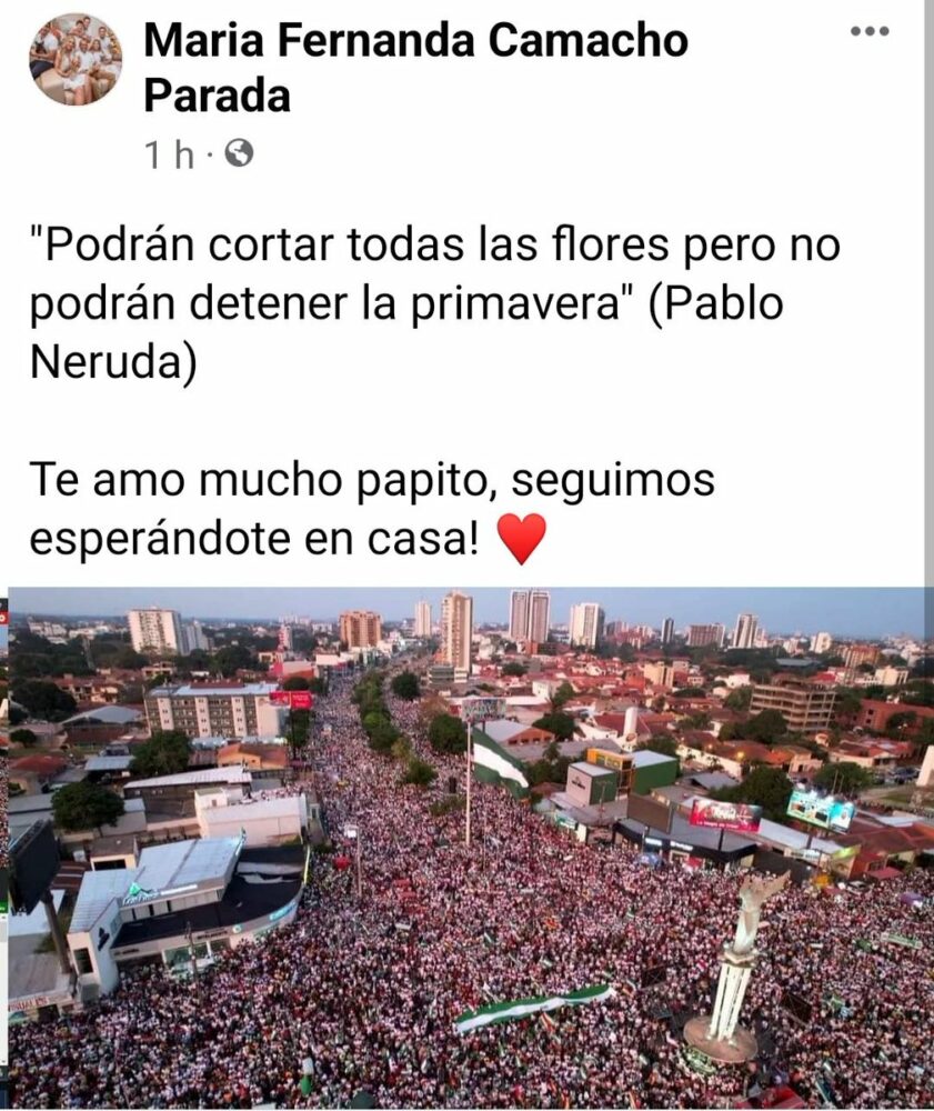 Te amo mucho papito, seguimos esperándote en casa! ♥️, fueron las palabras de @marifercamachop hija de nuestro líder y Gobernador.