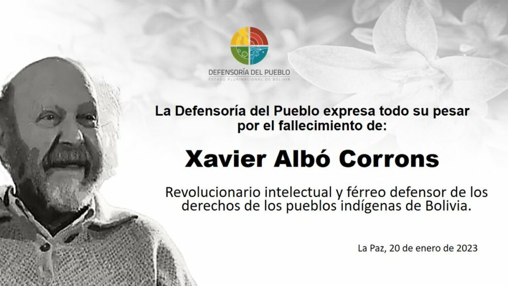 🔵 #ANF | La @DPBoliviaOf expresa sus condolencias por el fallecimiento del sacerdote jesuita Xavier Albó, a quien consideran un "revolucionario intelectual y férreo defensor de los #derechos de los pueblos indígenas de #Bolivia". pic.twitter.com/hjX1jf8WLn