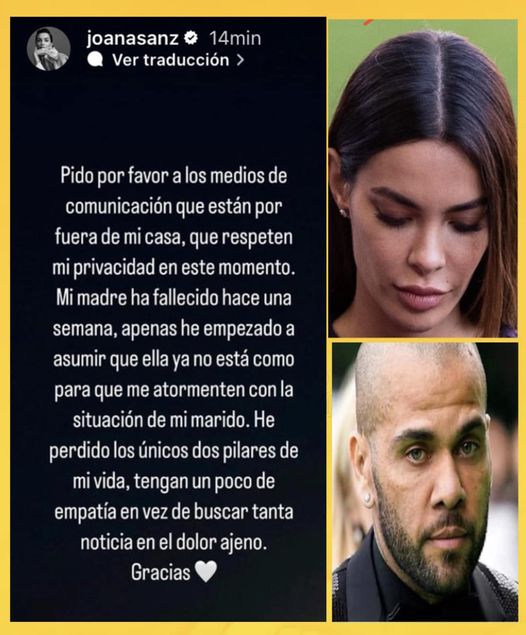 La esposa de Dani Alves pide clemencia a la prensa. Y que paren el acoso afuera de su casa.