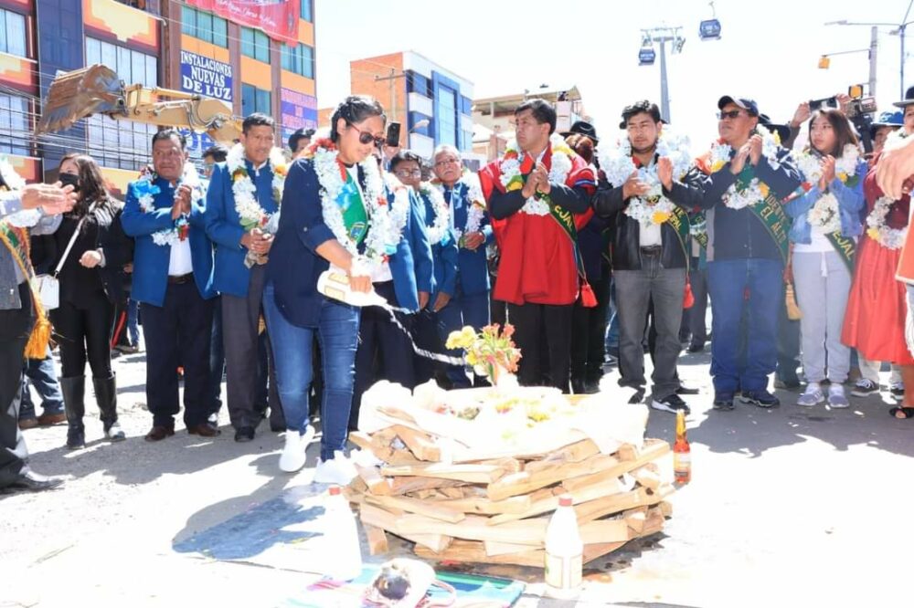 🔵#ANF | #Sociedad La alcaldesa de El Alto, @EvaCopa_Bol inauguró este sábado la construcción del distribuidor de la ‘Integración’, en la ‘Extranca Río Seco’. La autoridad dijo que el proyecto apunta a la modernidad del municipio.
