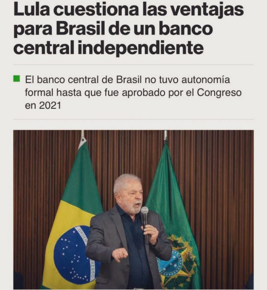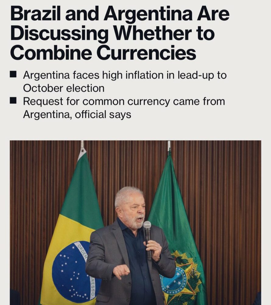 Lanzar una moneda única entre Brasil y Argentina, y además terminar con la independencia de ambos bancos centrales. Muy mala combinación. Explosiva. Así Brasil y la región terminan de argentinizarse. https://t.co/t4GDz2NdlR