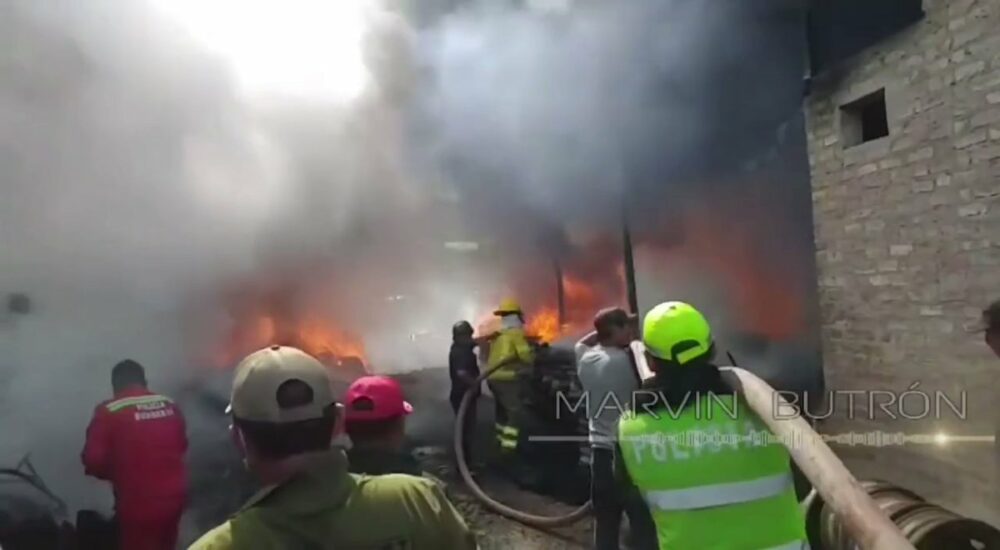 Un dep贸sito de llantas sufri贸 un incendio de gran magnitud en Vinto, Cochabamba, esta jornada. Los bomberos llegaron al lugar para controlar el fuego que s贸lo dej贸 da帽os materiales.