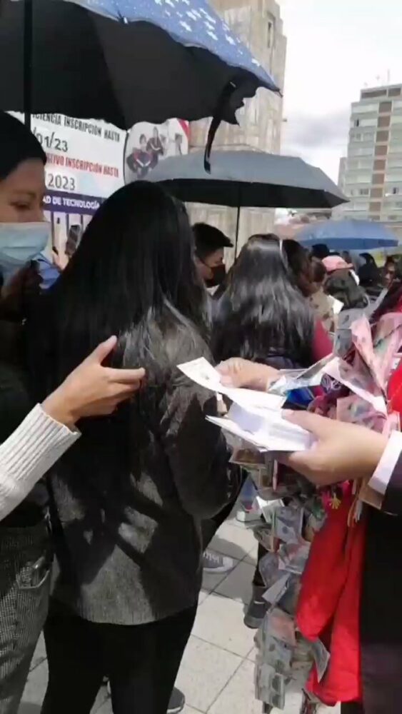 🔵 #ANF | El rector de la UMSA, Oscar Heredia, obsequió esta jornada títulos universitarios en miniatura conmemorando la festividad de #Alasita. (Video: Oscar Heredia) pic.twitter.com/j1zh6XvEMS