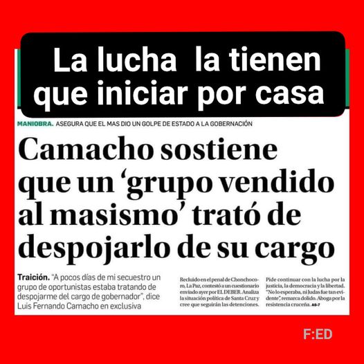 La lucha contra el régimen zurdo 🛑 también tiene que iniciar por casa, porque hay varios que quieren convivir con el MAS y con el Lucho 🧿