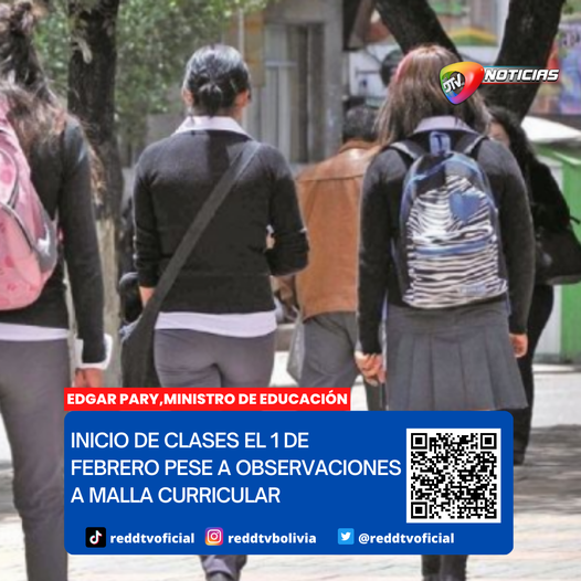 Ministro Edgar Pari, ratificó el inicio de clases el 01 de febrero pese a observaciones a la malla curricularCategorías NoticiasEtiquetas , Detrás de la Verdad, DTV, Facebook 26/01/2023 [vid_embed] Fuente: DTV => Recibir por Whatsapp las noticias destacadas