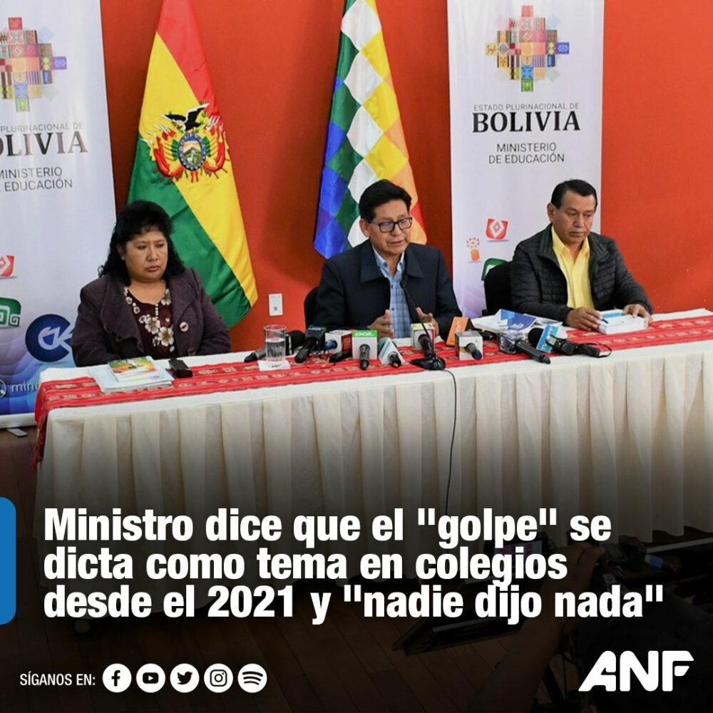 🔵 #ANF | #Sociedad El viceministro de Educación, Bartolomé Puma, admitió que las categorías de “golpe de Estado” y “gobierno de facto” se implementaron en la educación regular en gestiones pasadas.