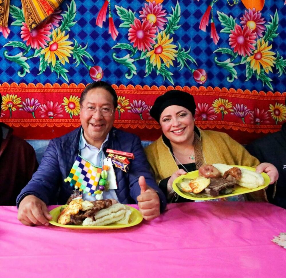🔵 #ANF | El presidente Luis Arce visitó hoy la feria de la Alasita en #LaPaz junto a la ministra de la Presidencia, María Nela Prada. «Compartimos un grato momento con nuestras y nuestros artesanos», tuiteó. https://t.co/dRHsZW4UCJ