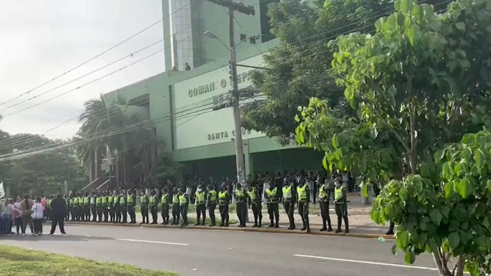 #ANF Un grupo de mujeres llegó hasta el Comando de la Policía en #SantaCruz para realizar un plantón en apoyo a Fátima Jordan, esposa del gobernador cruceño, ante el hallazgo de una cámara oculta en la celda de la autoridad en Chonchocoro.