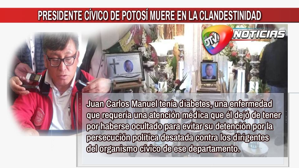 Juan Carlos Manuel Huallpa hace un año y dos meses estaba en la clandestinidad. Era el presidente del Comité Cívico Potosinista, ayer se confirmó su deceso. Sus restos llegaron por la mañana a la Villa Imperial procedente de la ciudad de La Paz y de inmediato el cuerpo ingresó a la funeraria San Miguel Arcángel de la capital potosina.