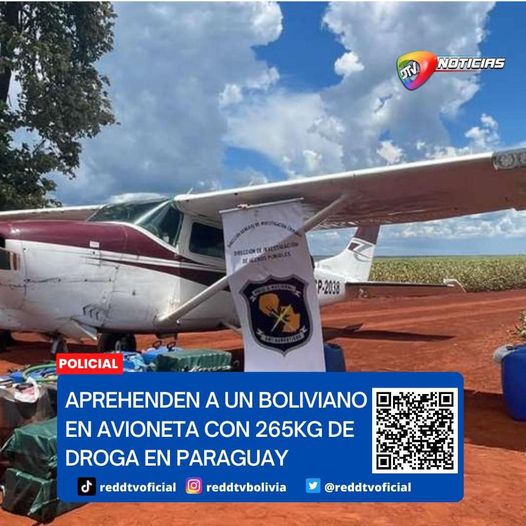 El domingo, agentes del Senad ejecutaron el operativo Halcón 2 en la zona rural del departamento Alto Paraná, a 300 kilómetros de Asunción y 20 kilómetros de la frontera con Brasil e interceptaron la aeronave de color blanco con franjas guindas, Cessna 206, cargada con 265 kilos de cocaína. Fueron detenidos el boliviano Lucio Alfonso Paz Fernández, con domicilio en Santa Cruz y el peruano Elmer Enrique Figueroa Paredes, quien también registra su vivienda en la capital cruceña.