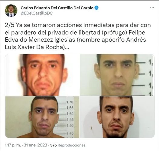 Del Castillo informa que reo extranjero que fugó en el Hospital de Clínicas en #LaPaz, fue identificado como Felipe Edvaldo Menezez