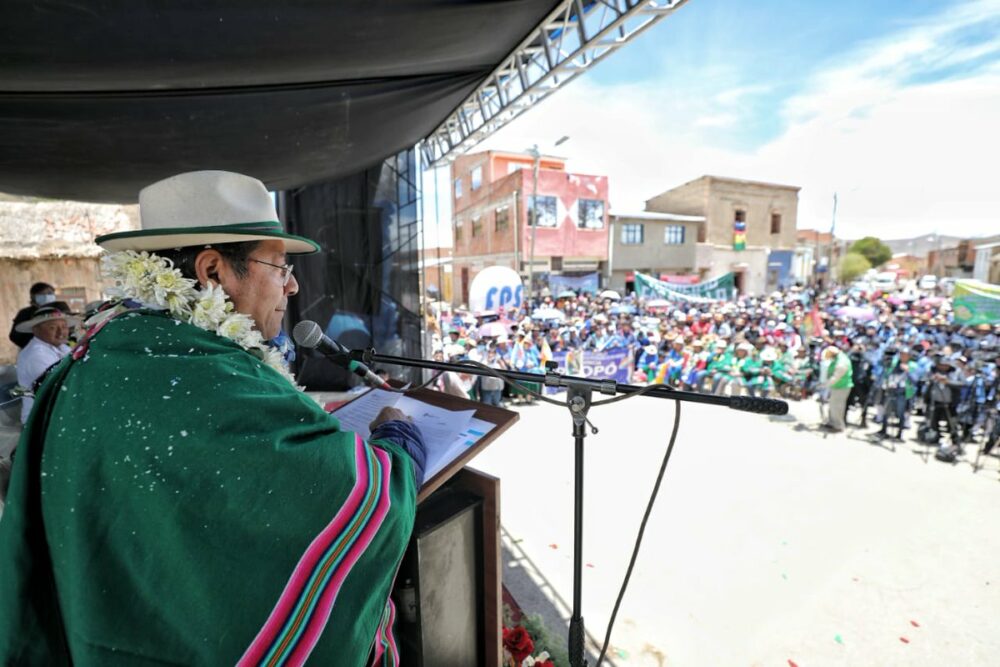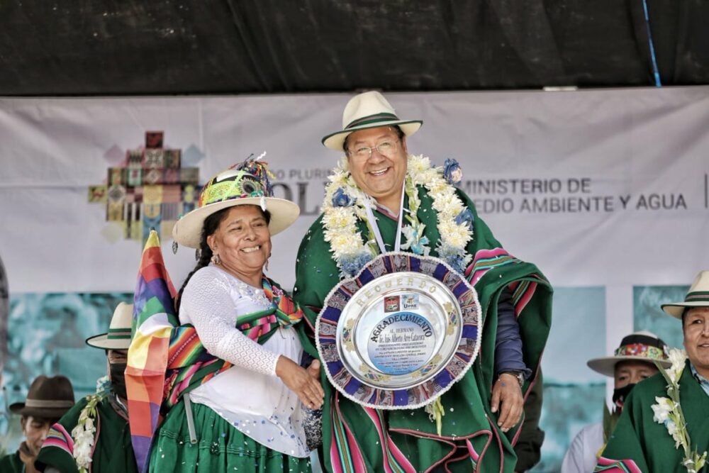 Contentos de visitar tierras orureñas; ahora llegamos por primera vez al municipio de Poopó, donde entregamos dos obras importantes: el Mejoramiento del Sistema de Agua Potable y la construcción de un moderno coliseo en favor de la comunidad Venta y Media.