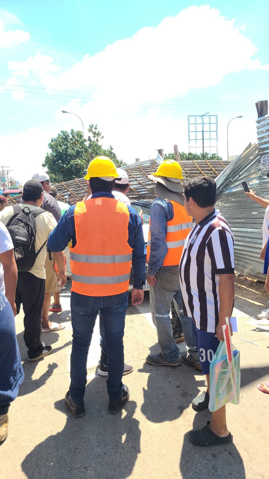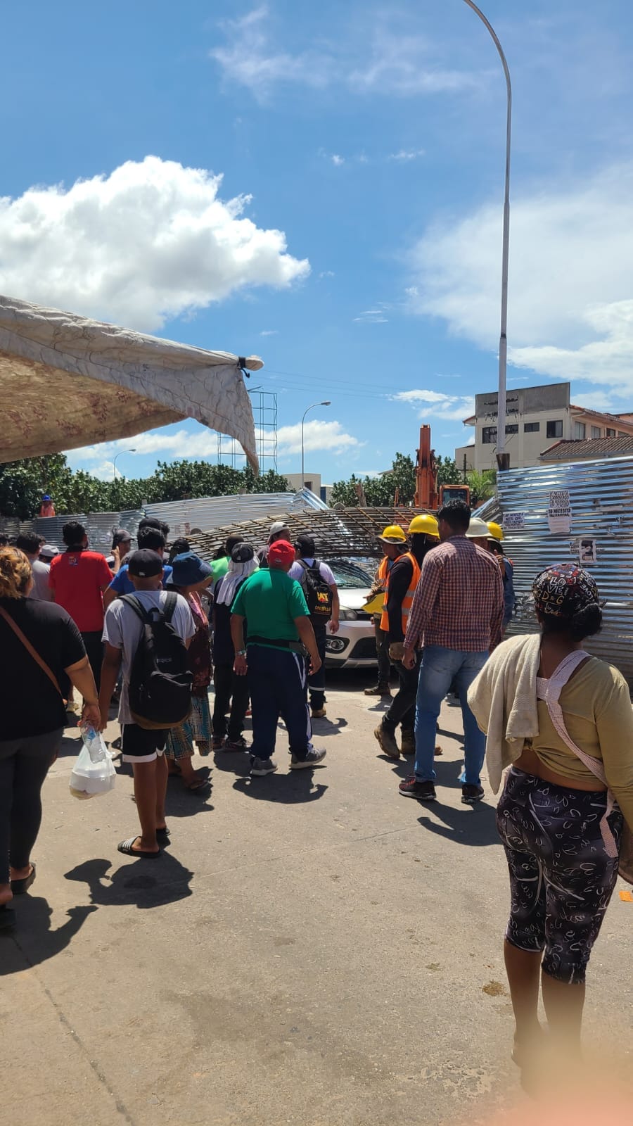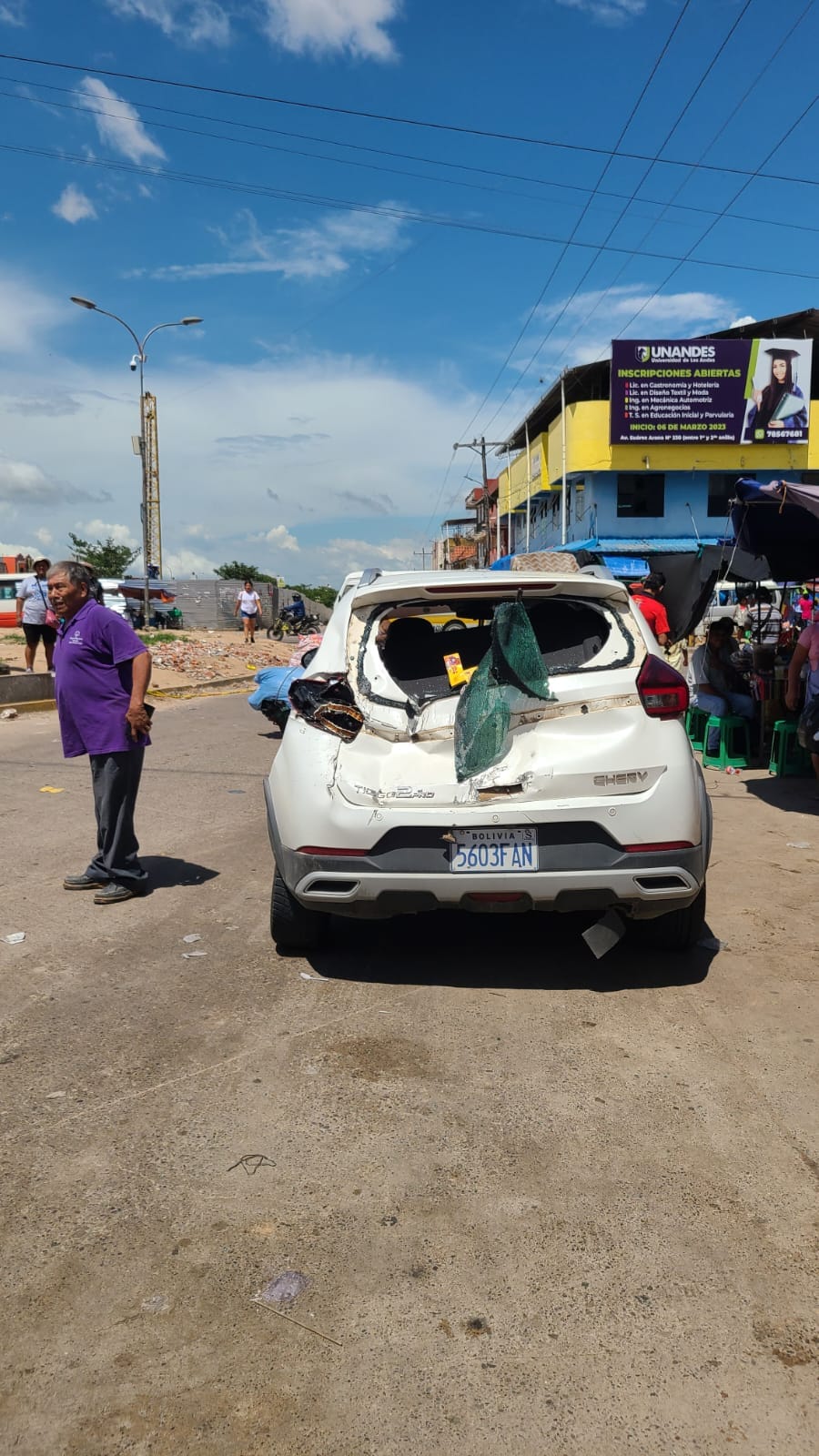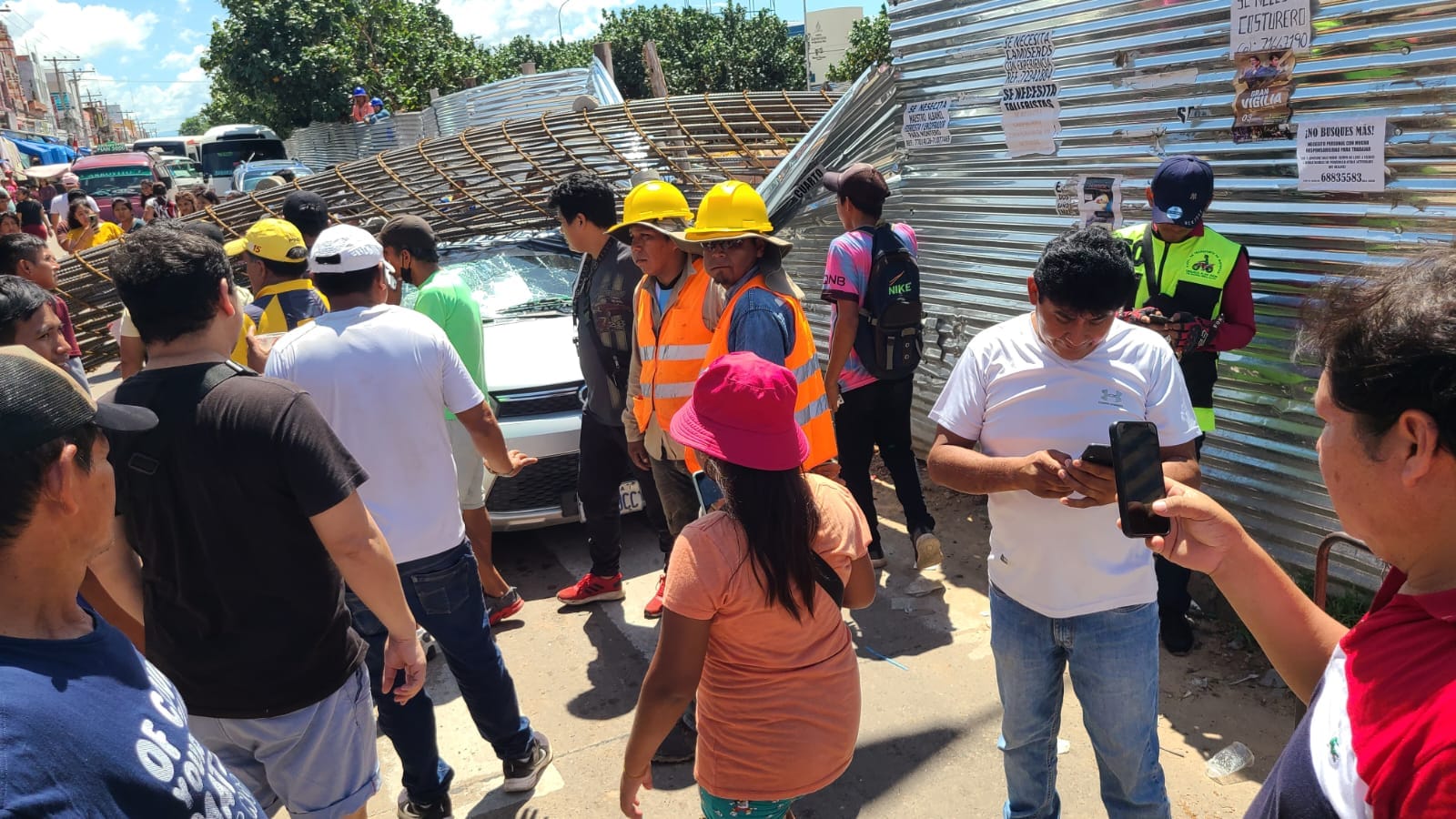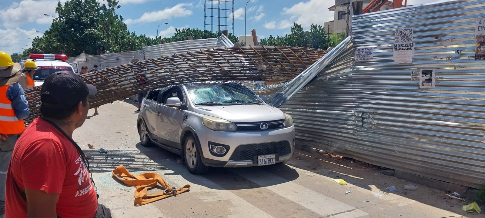 #SantaCruz: Estructura de fierro de obra que se ejecuta del viaducto en el obelisco del Plan 3.000, cayó sobre dos vehículo que cruzaban por la avenida, los choferes fueron evacuados a un centro médico cercano.