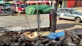 Vecinos piden la atención en una acera de la calle11 y avenida principal de la Villa Primero de Mayo donde una construcción dificulta el tránsito peatonal y se ha convertido en un riesgo.